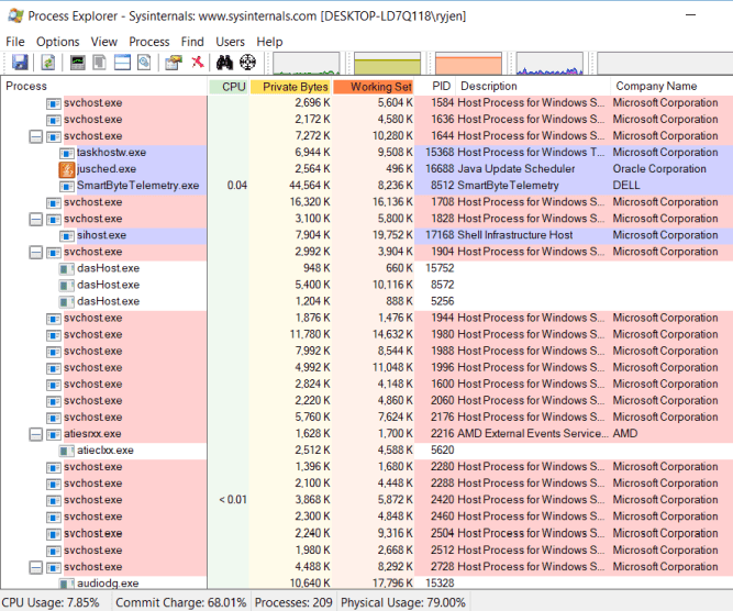 El problema con el Administrador de tareas(Task Manager) es que solo muestra los procesos de nivel superior. Por otro lado, Process Explorer utiliza una estructura de árbol para mostrarle no solo los procesos de nivel superior, sino también los procesos secundarios conectados a esa aplicación.