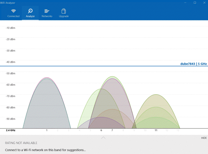 Proporciona la intensidad actual de las señales Wi-Fi disponibles. También le muestra un desglose de los detalles de la red a la que está conectado actualmente. Estos incluyen el canal, la frecuencia, el ancho de banda y más.