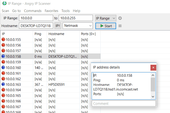 Los dispositivos conectados activamente se(Actively connected devices) muestran como direcciones IP con puntos azules. También verá el nombre de host del dispositivo y el estado actual del ping.