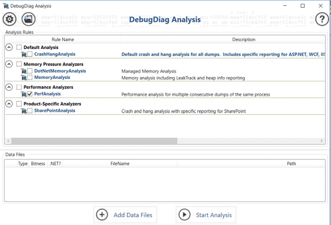 Esta herramienta para usuarios avanzados de Windows le permite realizar volcados de memoria completos de un proceso de Windows y hacer que Debug Diagnostics analice el archivo.