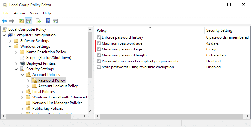 Habilitar o deshabilitar la caducidad de la contraseña en Windows 10