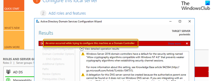 Se produjo un error al intentar configurar este equipo como controlador de dominio