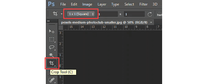 - Con la imagen abierta, seleccione herramienta de recorte(Herramienta de recorte) . elegir 1 × 1 (cuadrado)(1 × 1 (cuadrado)) para dimensiones. Esto produce un producto final sostenible.