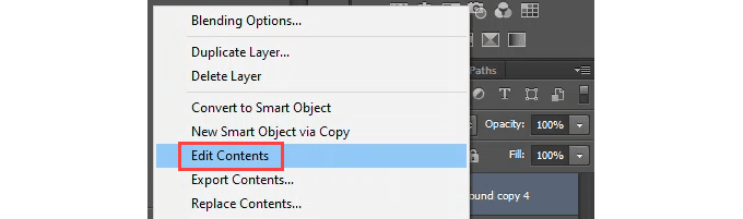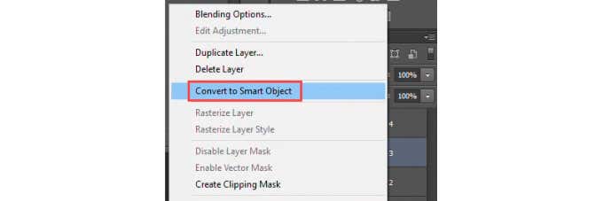 - Haga clic derecho en el mouse todo el mundo(todo el mundo) Con cuatro(cuatro instantáneas) capas de copia de fondo y seleccione Convertir en un objeto inteligente(Convertir a SmartObject) . Esto le permitirá editar cada capa por separado.
