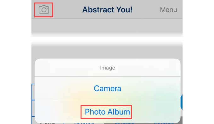 - Abra la aplicación y toque el icono de la cámara. Elegir Cámara(cámara) ambas cosas album de fotos(Album de fotos) para la imagen de origen. A continuación, seleccione la imagen con la que desea trabajar.