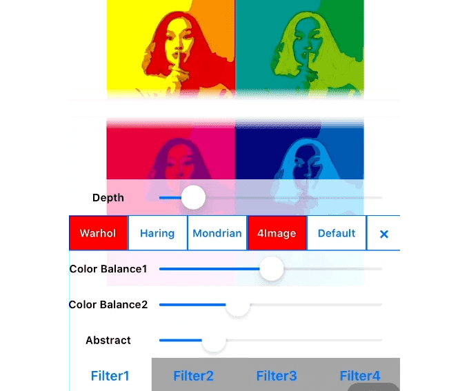 dos. Aplicación para iPhone Andy Warhol Pop Art(Aplicación para iPhone estilo Pop Art de Andy Warhol)