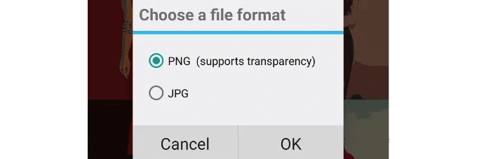 Te da la opción de guardar como PNG ambas cosas JPG . Bastante bueno para una aplicación gratuita.