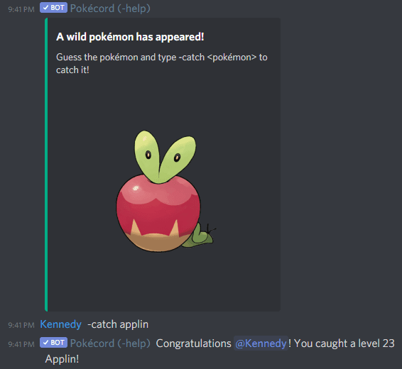Para jugar Pokécord , simplemente agregue el bot a un servidor y permítale monitorear los canales donde los usuarios chatean activamente. Mientras esto sucede, Pokécord generará automáticamente Pokémon para que los miembros del servidor los atrapen. Para atrapar un Pokémon , los jugadores deben escribir la p! comando de captura(catch command) seguido del nombre del Pokémon .