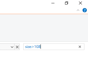 Si lo que considera un archivo grande no está disponible en el menú predeterminado, escriba size:>1GB (reemplace 1 GB con su tamaño) en el cuadro de búsqueda y presione Entrar(Enter) . Solo buscará archivos que sean más grandes que el tamaño especificado.