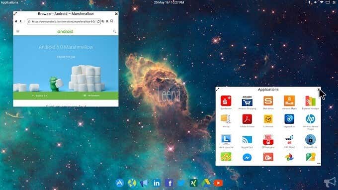En este momento, la interfaz de usuario de Leena Desktop(Leena Desktop UI) todavía está en forma beta, pero ya parece increíblemente prometedora. Leena es, de hecho, solo una aplicación de Android(Android app) , pero ha sido inteligentemente escrita para brindarle gran parte de la funcionalidad principal(core functionality) que obtendría de una interfaz de usuario de escritorio real para su teléfono.