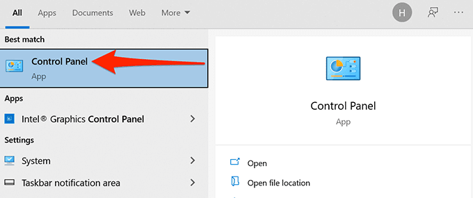 - Acceda al menú Inicio(Start) , busque Panel(Control Panel) de control y seleccione la utilidad en los resultados.