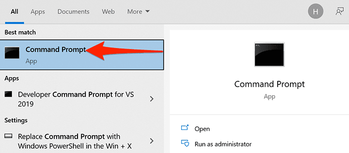 - Presione la tecla de Windows para abrir el menú Inicio(Start) , busque Símbolo del sistema(Command Prompt) y seleccione la utilidad en los resultados de búsqueda.