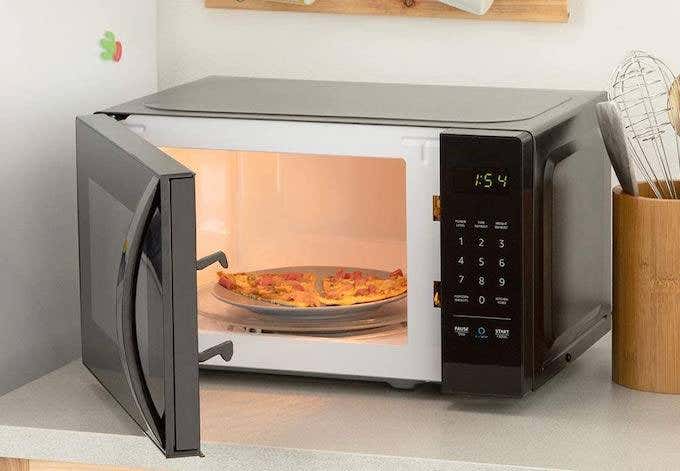 los Horno de microondas básico de Amazon(Microondas básico de Amazon) Es más compacto para ahorrar espacio en el mostrador, pero sigue siendo un horno de microondas completamente funcional con características de seguridad para niños, 10 niveles de potencia diferentes y más. No tienes que adivinar la hora. Por ejemplo, puedes decir «Alexa, calienta una taza de café». El horno de microondas establecerá automáticamente el nivel de potencia y el tiempo.