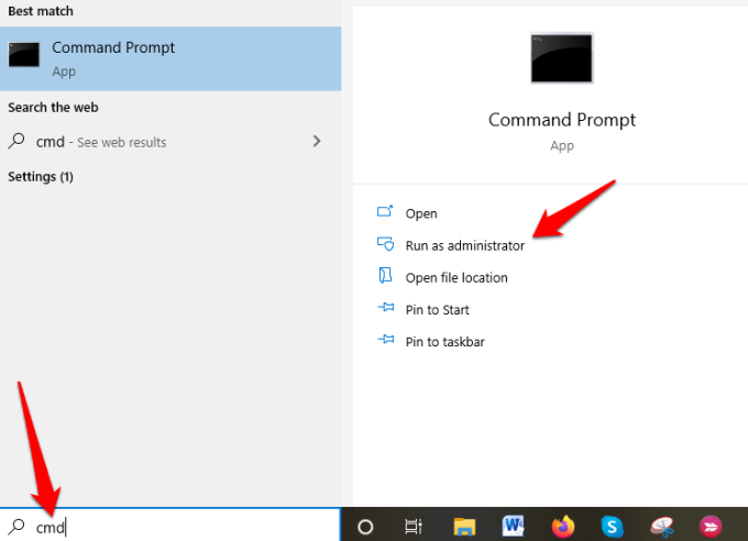 - Abrelo símbolo del sistema(Símbolo del sistema) mecanografía alta cmd en la barra de búsqueda y haciendo clic w Ejecutar como administrador(Ejecutar como administrador) .