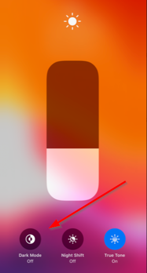 Como alternativa al método anterior, puede utilizar Centro de control(Centro de control) en el iPhone para encenderlo o apagarlo rápidamente modo oscuro(Modo oscuro) cualquier momento. Si tiene un iPhone X o posterior, deslícese hacia abajo desde la esquina superior derecha de su iPhone, luego presione y mantenga presionada la barra de ajuste de brillo por un segundo.