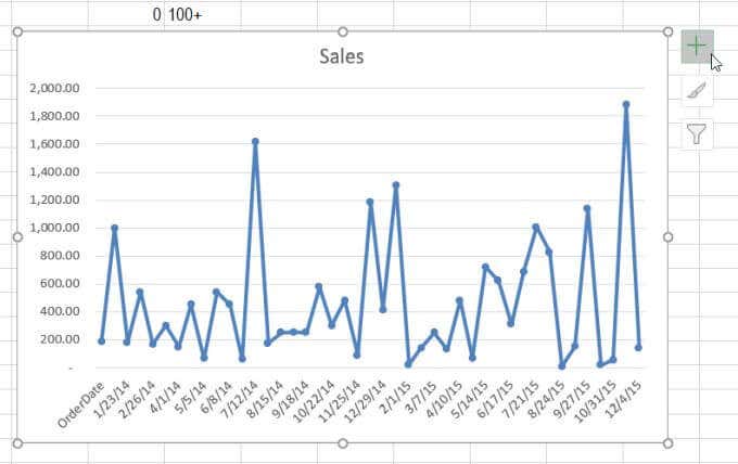 1. Para comenzar, haga clic en el gráfico y luego seleccione el botón Elementos del gráfico(Chart Elements button) (el + symbolesquina(right corner) superior derecha del gráfico.