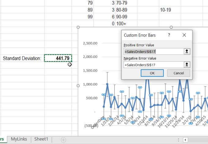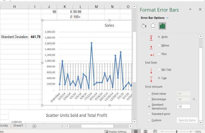 O bien, puede seleccionar Personalizado(Custom) y elegir su desviación estándar calculada de su hoja de cálculo.
