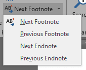 Si selecciona la flecha desplegable a la derecha del botón Nota al pie siguiente(Next Footnote) , verá el botón Nota(Previous Footnote) al pie anterior.