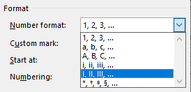 - Formato. (Format. )¿Quién dijo que las notas al pie tienen que estar numeradas? En esta sección, puede cambiar el formato de número a una variedad de otras opciones, incluida una marca o símbolo personalizado.