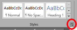 - Seleccione Inicio(Home ) en la cinta de la barra de herramientas y la flecha emergente en la sección Estilos(Styles ) .