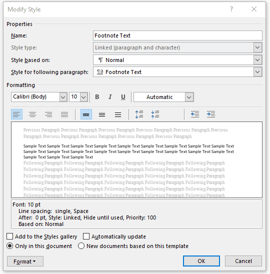 - En la ventana emergente Modificar estilo(Modify Style) que aparece, ajuste el formato de sus notas al pie como desee.