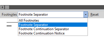 - En el menú desplegable Notas(Footnotes) al pie debajo de su documento principal, seleccione Separador de notas(Footnote Separator) al pie .
