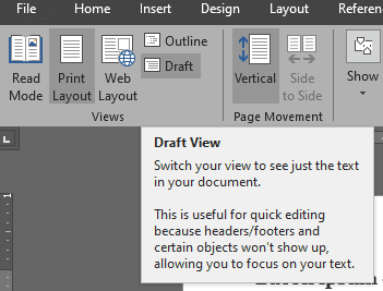 - Seleccione Ver(View) en la barra de herramientas y luego presione el botón Borrador(Draft) .