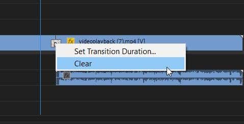 - Seleccione una transición en su línea de tiempo y luego haga clic derecho sobre ella. Elegir Borrar(Por supuesto) y la transición será eliminada.