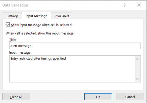 Ahora, cuando seleccione una de las celdas, todos verán el recordatorio del mensaje de entrada en el que se pueden ingresar las horas.
