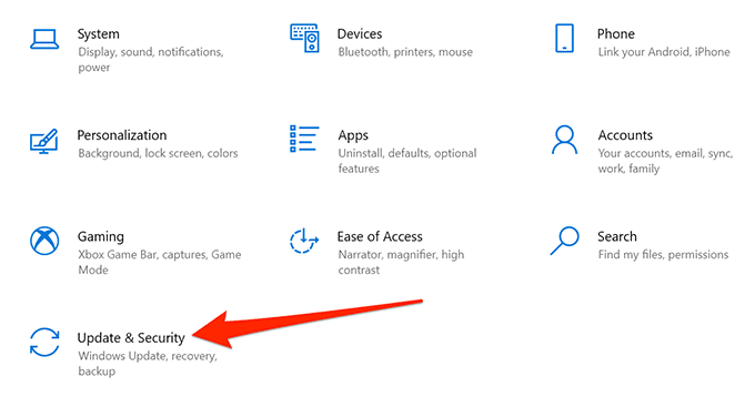 - Seleccione Actualización y seguridad(Update & Security) en la parte inferior.
