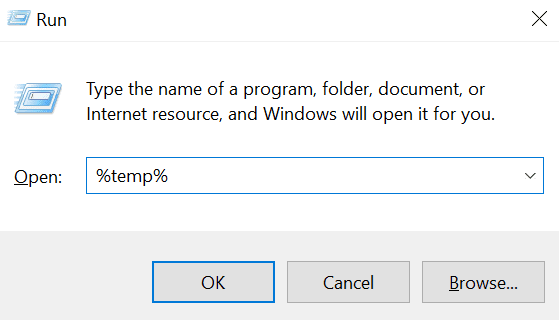 - Escriba %temp% en Ejecutar y haga clic en Aceptar(OK ) para abrir la carpeta temporal.