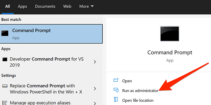 - Acceda al menú Inicio(Start) , busque Símbolo del sistema(Command Prompt) y seleccione Ejecutar como administrador(Run as administrator) a la derecha.