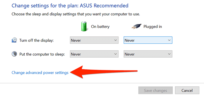 - Selecciona Cambiar la configuración avanzada de energía(Change advanced power settings) .