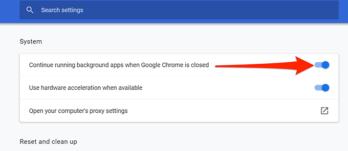 - Desactive Continuar ejecutando aplicaciones en segundo plano cuando Google Chrome esté cerrado(Continue running background apps when Google Chrome is closed) a la derecha.