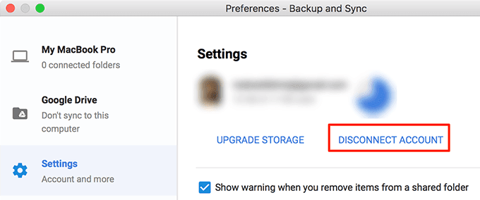 - Haga clic en Desconectar cuenta(Disconnect Account) en el panel lateral derecho.