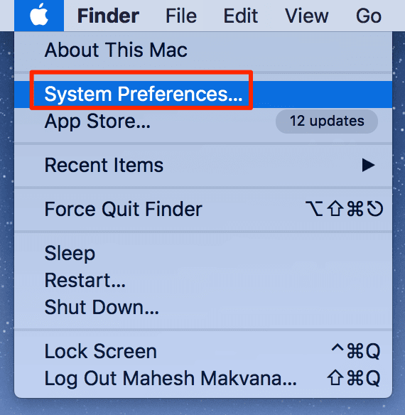 - Haga clic(Click) en el logotipo de Apple en la esquina superior izquierda de su pantalla y seleccione Preferencias del sistema(System Preferences) .