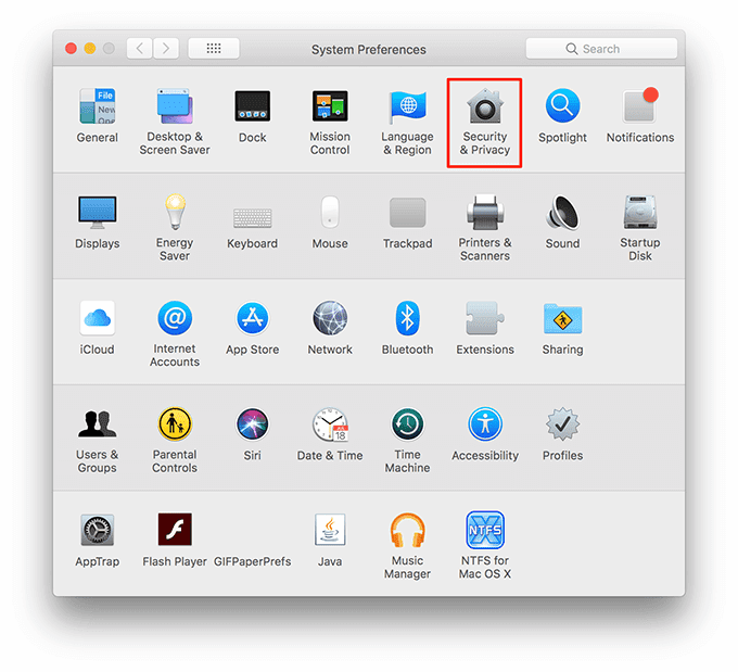 - Seleccione Seguridad y privacidad(Security & Privacy) en la siguiente pantalla.