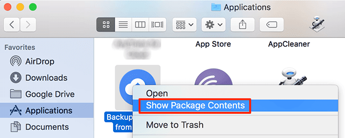 - Haga clic derecho en la aplicación y seleccione Mostrar contenido del paquete(Show Package Contents) .