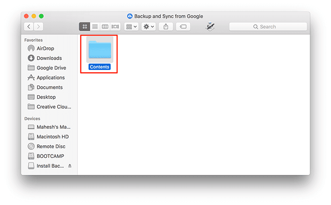 La aplicación Copia(Backup) de seguridad y sincronización(Sync) viene con un script y ejecutarlo a veces soluciona muchos problemas con la aplicación en su Mac . Puede acceder revelando el contenido del paquete de la aplicación(app package) .