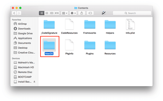 - Abra la carpeta macOS .