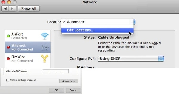 - Luego, selecciona Editar ubicaciones e ingrese un nombre para la conexión, como Statis IP.