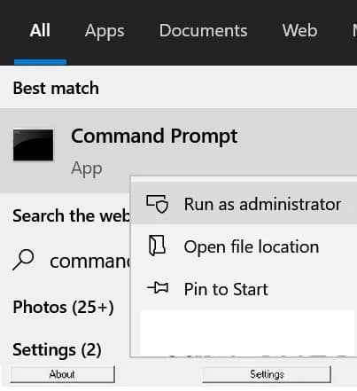- Luego haz clic en Windows, busca Símbolo del sistema, haz clic con el botón derecho en él y selecciona Ejecutar como administrador.