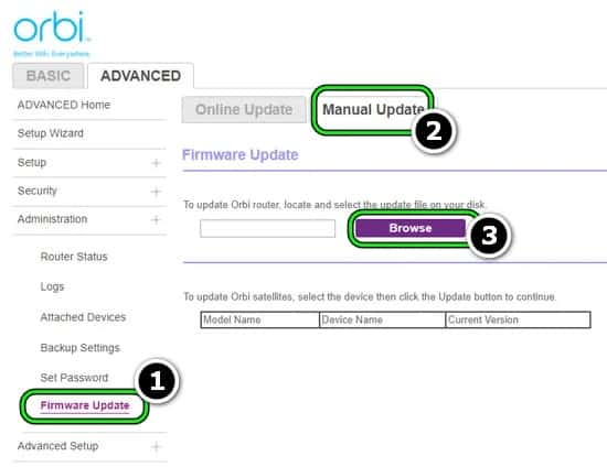 - Luego, en la interfaz de usuario web de Orbi, diríjgete a lo siguiente: