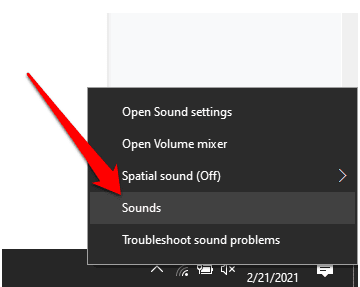- Haga clic con el botón derecho en el icono Sonido(Sound) en el lado derecho de la barra de tareas(Taskbar) y seleccione Sonidos(Sounds) .