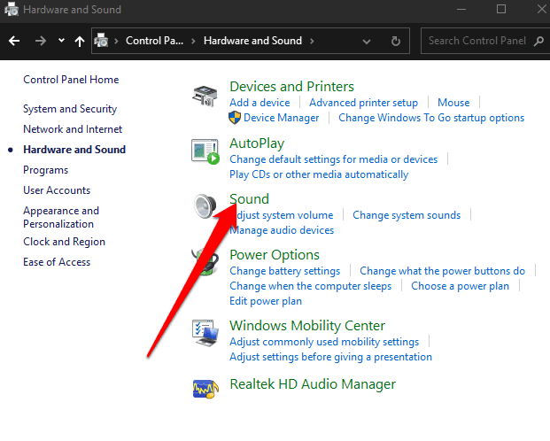 - Seleccione Sonido(Sound) .