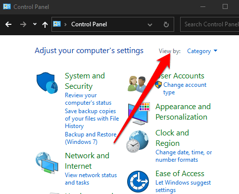 - Para hacer esto, abra el Panel de control(Control Panel) y seleccione la opción Ver por(View by) en el lado superior derecho.