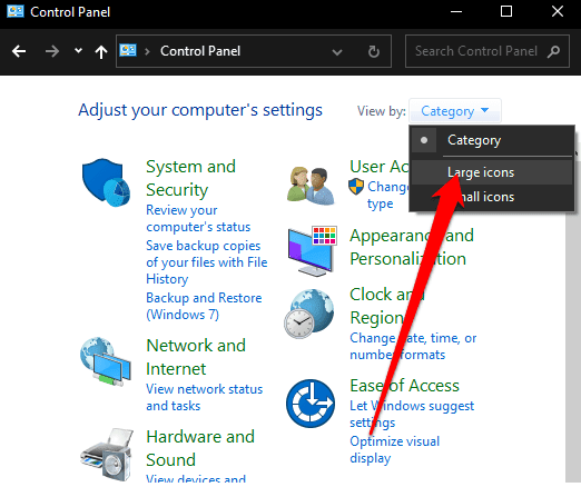 - Seleccione Iconos grandes(Large icons) .