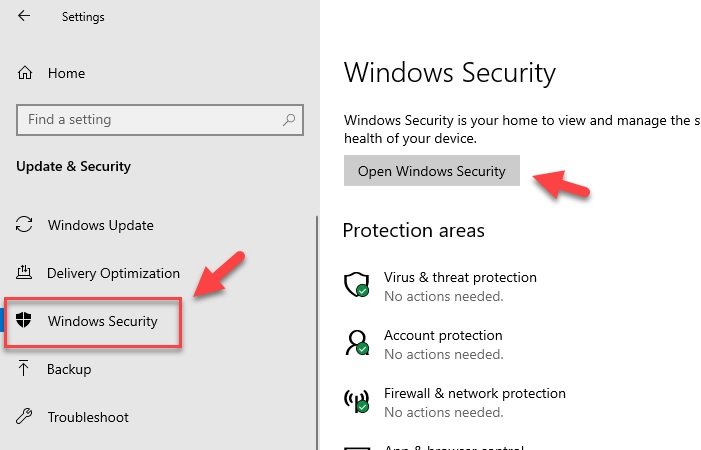 Paso 3:(Step 3: ) Haga clic en Windows Security(left panel)> Open Windows Security(right panel)