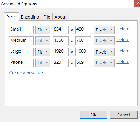 Y si desea cambiar los tamaños de imagen predeterminados, consulte Opciones avanzadas(Opciones avanzadas) .