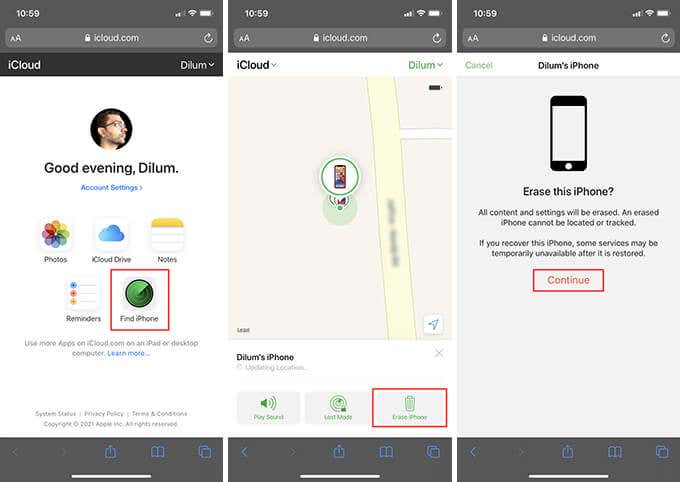 Aplicación web Encontrar iPhone en iCloud.com le permite borrar los datos del iPhone y restaurarlos a la configuración de fábrica. Este es un método alternativo que puede usar si no tiene una computadora a mano.